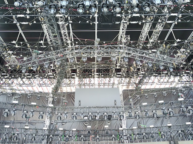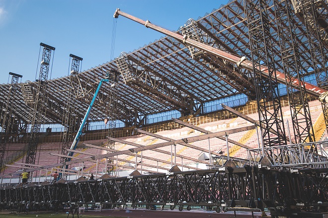 The MyT Folding Steroid Roof System, with spot and delay towers (constructed with MyT Folding Steroid’s modular components), was used at the Tribute Concert in Naples,
