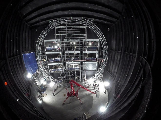 A massive, custom-designed, truss circle (22 metre diameter!) for a Fulldome projection system in South Korea. The custom circle, which serves to support lights and projection equipment, was constructed using specially designed, rectangular 850 × 990 mm Milos truss with 48 × 3 mm tubes. Each truss section includes ladder bars that enable staff to climb within the circle onsite to install the projection system equipment.